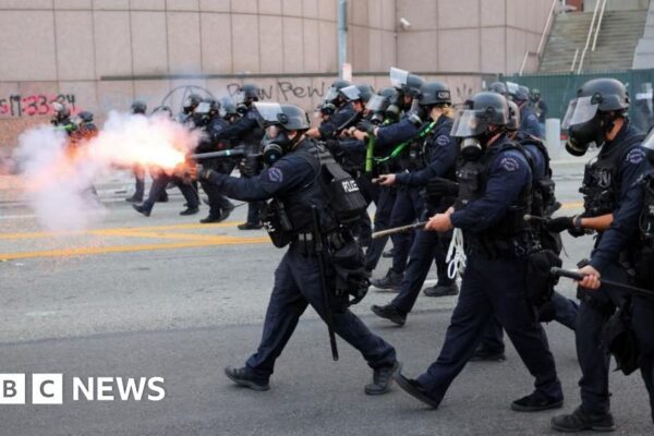 Riot police and protesters clash after LA immigration raids