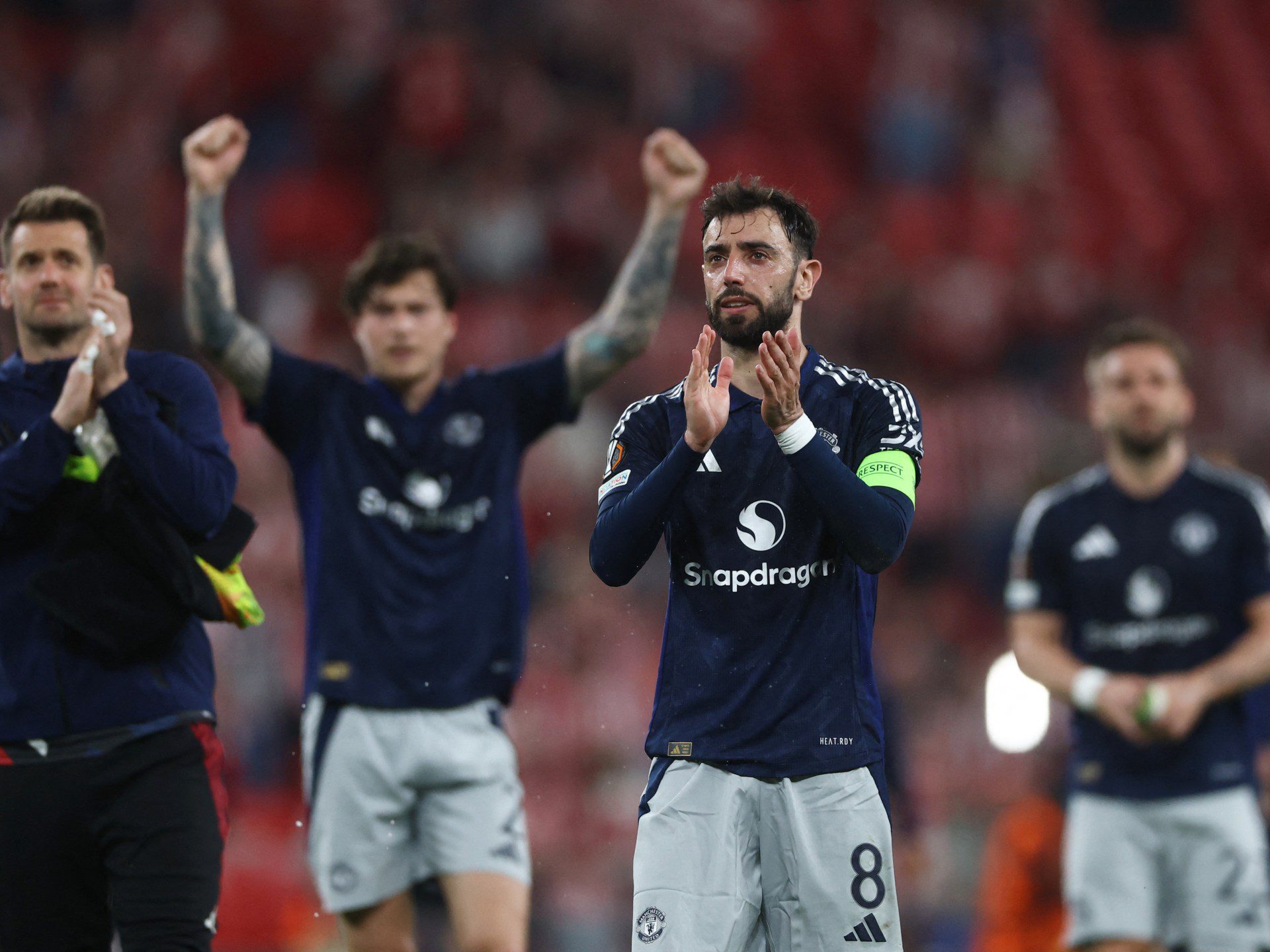 Bruno Fernandes scores twice as Man Utd seal game in first half in Bilbao, where Athletic Club were reduced to 10 men.
